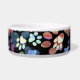 Impresionante capas, texturas de colores y tamaños de huellas en el diseño de repetición sin fisuras. Fondo negro. Perfecto para el amante de las mascotas.