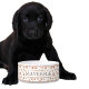 Este tazón presenta un patrón de huellas y huesos con un nombre de perro personalizado.