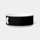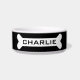 Un hueso de perro con su nombre de mascotas y un fondo negro que pueden ser cambiados