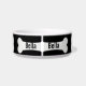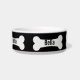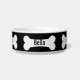Hueso de perro blanco con el nombre del perro sobre fondo negro. El nombre es modificable. Se puede cambiar el color de fondo.
