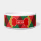 Comedero Hueso Rojo en Patrón Festivo Argyle y Nombre de Ma