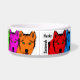 Este cuenco caprichoso del mascota del perro es ideal para el amante del arte pop y del husky siberiano en su vida. Los retratos fornidos coloridos del arte pop rodean el exterior de este cuenco de la diversión. Hay texto adaptable para que usted añada el su nombre de mascota o quite simplemente el texto si usted prefiere una mirada no personalizada.
