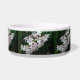 Este impresionante tazón mascota presenta una hermosa foto de primer plano de un grupo de hermosas flores blancas de Hyacinth. Cada flor es blanca por dentro y matizada por un color rosa pálido en el exterior.