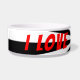 schwarz weißer Hintergrund-Spirale, rotes Herz als Mittelpunkt steht für die Liebe und ein roter Schriftzugi love my dog
