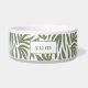 Este tazón botánico de comida para perros impresos presenta una adorable tipografía "yum", y un patrón de hojas verdes y blancas de moda.