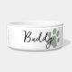 Moderno y simple huella de pata simple tazón de mascota de gato de perro personalizado. Impresión de página verde de salvia