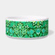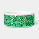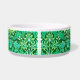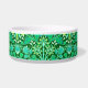 tazón mascota en un patrón vintage de William Morris de jacintos, tulipanes y hojas, en tonos de verde esmeralda y jade, acentuado con agua y blanco, sobre un fondo verde profundo del bosque
