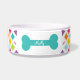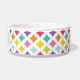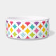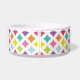 Cuenco brillantemente coloreado del perro de la impresión del diamante del arco iris con el marco azul del hueso para personalizar con el su nombre de mascota.
