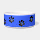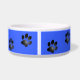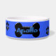 Este lindo tazón de perro personalizado presenta un patrón de huellas de pata negra y un gran patrón de hueso negro en el medio sobre un fondo azul cobalto. ¡personalizar añadiendo el nombre de su mascota o cualquier texto que desee en el tipo de letra, color de letra y tamaño de letra de su elección!