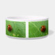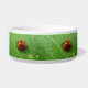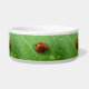 Este impresionante tazón mascota presenta una fotografía de primer plano de un pájaro escocés británico de 7 puntos sentado en una hoja. La foto fue tomada directamente desde arriba de la mariquita usando la fotografía macro, resultando en una imagen tan detallada que se pueden ver todas las venas en la hoja en la que está sentada la mariquita.