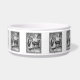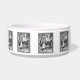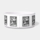 Este tazón mascota está rodeado de un ilustracion vintage en blanco y negro de una pequeña capucha roja en el bosque hablando con el lobo en un marco negro de fantasía.