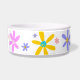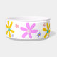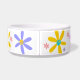 Diseño de margarita alegre en el tazón de cerámica para mascotas de su elección. Un gráfico brillante y positivo personalizable en el color de fondo favorito de su mascota. Agregue un toque de color brillante y positivo a la rutina diaria de su 'mejor amigo'. Simple y dulce...¿Qué más podría pedir su perro? Las galletas se venden por separado...