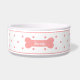 Comedero Lunares rosados sobre blanco con hueso de perro y