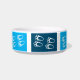 plato de alimentación de cerámica azul y blanca de conejo mascota con pisadas de conejo.