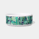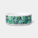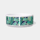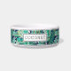 Para los mascotas más elegantes, este bonito tazón de estilo tropical personalizado para perros o gatos presenta un patrón de hojas de plátano verde sobre un fondo azul marino con puntos blancos abstractos. Personaliza con tu nombre de mascota.