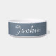 Comedero Mascota de nombre manuscrito mínimo gris y blanco