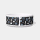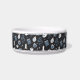 Prepárense sus mascotas para Halloween con este espeluznante tazón personalizado que presenta un patrón de serpientes, cristales místicos, pociones, ortografías, velas, tarros, tarros y pociones en un fondo de carbón vegetal. Personaliza con tu nombre de mascota.