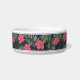 Para los mascotas con más aloha, este lindo tazón de perro o gato de inspiración hawaiana presenta un patrón de flores de hibisco rosa magenta brillante y un frondoso follaje verde sobre un fondo azul marino. Personaliza con tu nombre de mascota.