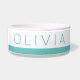 El tazón mascota verde azulado brillante azul turquesa-verde brillante personalizado para la comida o el agua de su perro o gato con una sencilla, minimalista y moderna franja y letras de letra delgadas se verán muy bien en cualquier habitación.