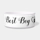 Deja que tu mejor perro coma al estilo para tu boda con este lindo tazón de comida mascota del 'Mejor Chico'. Este tazón de boda de perro con estampado de corazón y de garra le da un toque elegante a la decoración de su boda de perro y a un tesoro de keepsake. Personaliza tu mejor nombre de perro en el otro lado. DERECHOS RESERVADOS © 2021 Judy Burrows, Black Dog Art - Todos los derechos reservados. Mejor chico Mascota Boda de comida para perro personalizado Bowl