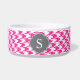 Monograma grande de perros con una gala rosa y blanca, lindo y precoz. Excelente accesorio para tu pequeña caca de perrito.