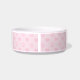 El diseño es agradable y cuenta con un dulce ilustracion de un gatito de tabby naranja tomando una siesta en un bonito corazón rosa o azul y un fondo de huellas de pata.