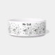 Escena de invierno festiva dibujada a mano, que muestra a un gato sentado en una cornisa de ventana mirando un árbol de Navidad con copos de nieve. Diseñado por Anne Londez, perfecto para tu chocolate caliente de temporada. El tazón está personalizado con el nombre de su mascota.