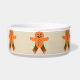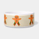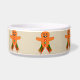 Este impresionante tazón mascota presenta a un personalizado adorable de un hombre de jengibre colorido. tiene botones rojos y verdes, una gran sonrisa en su cara y borlos rojos y verdes alrededor de sus piernas listos para un fiesta Navidad.