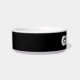Moderno y audaz tazón de alimentación para perros negros con el nombre de su mascota en blanco.