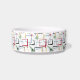 Este fabuloso tazón para mascotas moderno de mediados de siglo presenta cuadrados abstractos, explosiones de estrellas y un bumerán en los colores rojo, verde, azul, amarillo y negro, y el nombre de tu mascota en una fuente informal roja. ¡Agrega un elemento divertido a la hora de comer de tu mascota!