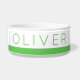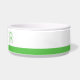 Personalizado Stripe Ceramic Dog Bowl para comida o agua con el nombre de tu cachorro y un brillante borde verde cal.