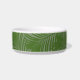 Patrón tropical de hojas de palma en un único tazón mascota de color verde de camo con un nombre personalizado para su perro o gato. Ideal para una casa de vacaciones en la playa o una moderna cocina. Parte de un conjunto coordinado de accesorios mascotas únicos disponibles en la tienda de diseño de Papel de uva Zazzle.