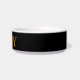 Cuenco con el nombre del mascota de guión dorado. Es fácil cambiar el texto. También se puede cambiar el color.