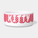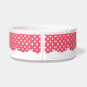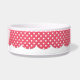 Nombre mascota en el patrón de puntos de polka rojo y blanco. El nombre se puede cambiar o eliminar.