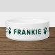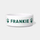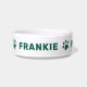 Este singular tazón de perro o gato mascota personalizado cuenta con su nombre en un estilo moderno todo-caps con adorables acentos de huella de pata alrededor del bol. Un diseño simple y limpio para tu peludo familiar. Cabe destacar que el color verde oscuro del texto y las huellas de la pata pueden modificarse.
