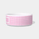 Comida de perro a cuadros o tazón de agua con un patrón de cuadrícula rosa pastel y personalizado con un nombre. Un producto estético moderno y colorido para sus mascotas.