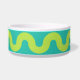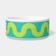 Un diseño del zigzag de la diversión como ondas de balanceo en verde lima clara en un fondo azul verde azulado. Personalice con su opción del texto conocido o especial.