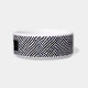 Un collar personalizado con un diseño geométrico abstracto en blanco y negro. Contiene espacio para el nombre de su mascota.