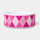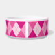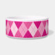 Patrón de estilo argyle en esquema de color rosa. También hay una pancarta en forma de hueso de perro negro con un área de texto personalizable para el nombre de la mascota.