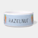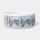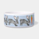 Mi pintura acuarela de un conejo gris suave en un patrón de gran formato hace un tazón creativo para cualquier mascota, ¡pero especialmente para tu conejo mascota! Tiene un fondo azul claro bonito. Bunny también tiene un ojo marrón y orejas rosas amarillas. Personalizar con el nombre de su mascota entre las dos zanahorias - es fácil de personalizar usando la plantilla de texto y el menú de edición. Este bol no tiene llanta, así que tu moño no puede recogerla y tirarla. Perfecto para cualquiera a quien le gusten los conejos, los animales y la naturaleza. Artes y diseño originales, singulares y singulares de Tuzi Williams.