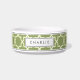 Trata a tu amigo peludo a este elegante tazón personalizado, con un clásico patrón de baldosas geométricas marroquíes en blanco y verde sabio para un aspecto atemporal y elegante. Perfecto para añadir un toque de encanto global a la comida de su mascota. Personaliza con tu nombre de mascota.