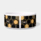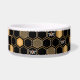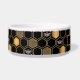 Este diseño contemporáneo presenta un patrón geométrico de colmena dorada, abejorros y un fondo de color negro.