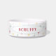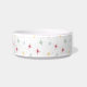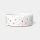Este tazón para mascotas moderno de mediados de siglo presenta una linda explosión atómica y puntos en los colores rojo, azul, amarillo y verde, con puntos negros. ¡Agrega el nombre de tu mascota para un elemento divertido a la hora de comer!