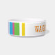 Patrón de rayas en colores brillantes de color rosa amarillo verde azul blanco con NOMBRE MASCOTA personalizado en naranja. Texto fácil de personalizar, color de texto, fuente. Genial para CUALQUIER Mascota. Moderno, Colorido, Sin Tiempo, Divertido. Mezcla y combina franjas enteras / Mascotas / Colecciones de amantes de mascotas por TMCdesign.