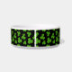 Cuto tazón de mascota de patrón de chamrock verde y negro para las vacaciones del Día de San Patricio. Fácilmente personalizable con un nombre para un regalo personalizado.