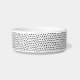 Este elegante plato de alimentación para mascotas presenta un patrón dibujado a mano de pequeñas manchas en negro sobre un fondo blanco. Incluye una plantilla de texto para personalización.