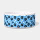 Se muestra el tazón mascota con una huella de garras azules. Elija entre un tamaño pequeño o grande. Personalizar este artículo o compra tal cual.