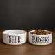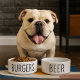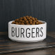 Este minimalista tazón de perro muestra la palabra "hamburguesas" en negrita en negro sobre una base limpia de cerámica blanca. Diseñado para los amantes de los perros modernos, combina estilo y humor en una pieza elegante y funcional. Perfecto para perros con actitud gastronómica y padres mascotas que aman los accesorios modernos y sobrios. Para completar el aspecto, se dispone por separado de un recipiente de agua con un texto de "cerveza".