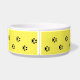 Gran regalo de encargo del mascota para los dueños del perro o del gato. Añada la imagen de su perro a este cuenco lindo del perro con sus impresiones del nombre y de la pata. Éste es amarillo pero usted puede cambiar el color en el área de la personalización.