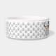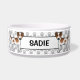 El personalizado original de Destei ilustracion de un perro de raza granjero danés-sueco de abrigo marrón y blanco. El fondo tiene un patrón de huellas de perros grises y también hay un área de texto personalizable para el nombre del perro.